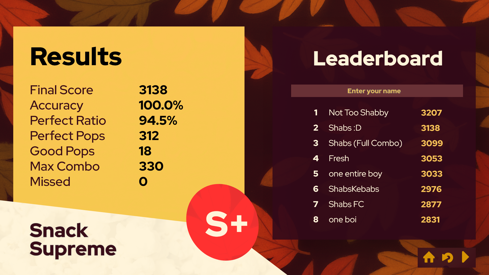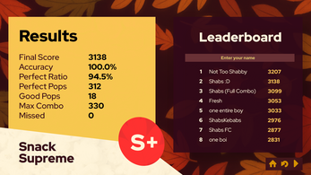 When the song ends you can enter your score on the leaderboard. If you enter the same name again, your new highest score will replace the old one.